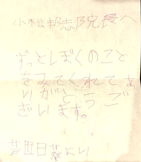 日葵(ひなた)くんの作品(その3) 2021/01/29 日葵(ひなた)くんは、診察に来られるたびに、絵を書いてくれます。 ピラミッド 下の絵は、別の日の作品です。 メッセージを書いてくれました。 ありがとう。 先日は、どらえもんのスモールライトを作って、持ってきてくれました。 いつも、ありがとう。 関連記事 6歳の日葵(ひなた)くんが似顔絵を描いてくれました。 日葵(ひなた)くんの作品(その2)